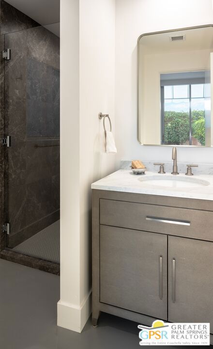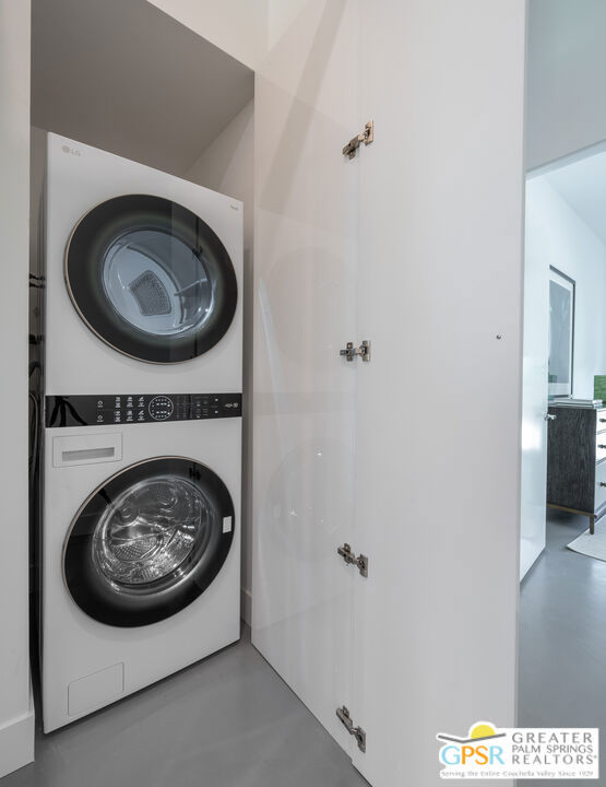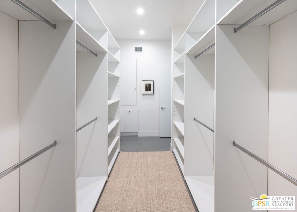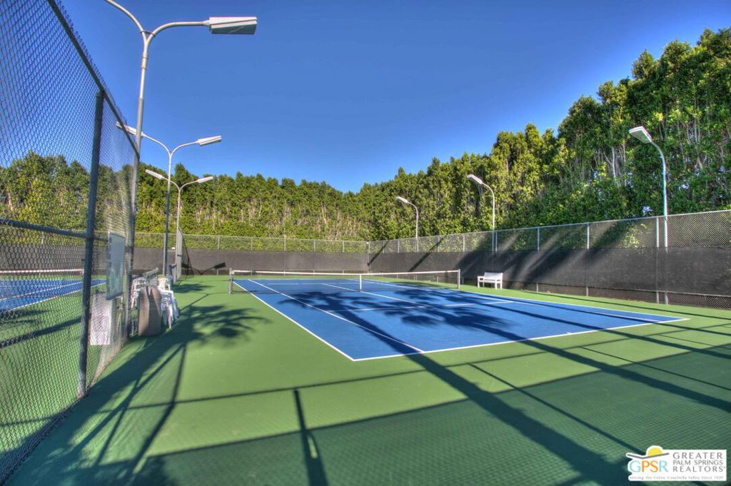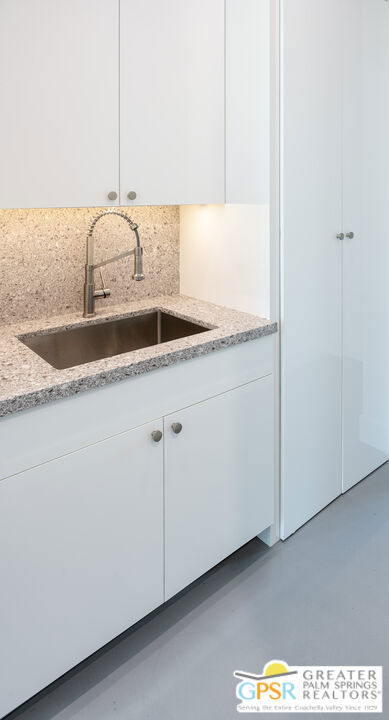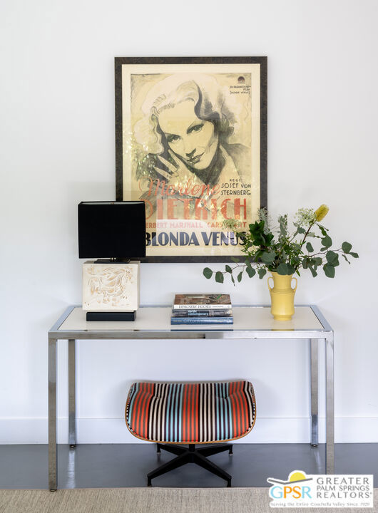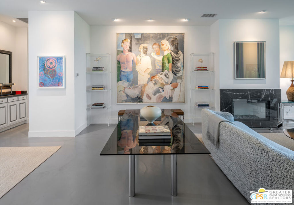 Situated in prestigious Marrakesh Country Club, this John Elgin Woolf designed Hollywood Regency Villa is a pinnacle of modern luxury. Remodeled by renowned celebrity photographer, Firooz Zahedi, author of several books including "My Elizabeth" on Elizabeth Taylor. This three-bedroom, three-bathroom, 2,427 square foot home is the largest of the original floor plans with the remodel completed in October 2025. Enter through the west-facing courtyard beautified with new hardscape and soft, lush landscaping scaling the exterior walls. Through iconic Marrakesh double doors lies a stunning, high-end modern renovation representative of a caliber that is higher than standard. The tall ceilings, extremely smooth white walls, new modern sliders and modern shades enhance light and set the mood throughout the home. In the living room, the black marbled fireplace, recessed art lighting and electric dual sun/blackout shades allow for the manipulation of light to your choice of ambience. Large new sliders frame stunning mountain views and the enormous green space behind. The expanded kitchen footprint allows for modern living with stainless steel appliances, gas cooking, modern gloss cabinetry, wine refrigerator and ample counter space. All bedrooms have private, en-suite baths with Restoration Hardware vanities in all baths. The primary bedroom includes a spacious bathroom with standalone tub, separate marble shower, new vanities, plumbing and fixtures. The walk-in closet includes custom shelving and organizers, and built-in laundry basket and wall storage. The secondary bedroom suite have been expanded to include a separate seating or office area, built-in closets and en-suite bathroom with shower. The third bedroom also includes an en-suite bathroom with shower and access to the front courtyard. Stackable laundry is hidden with convenient shelving and separate wash basin. Additional features include: a tankless water heater, two newly installed HVAC systems, two-car garage with EV Charging port, new electrical subpanel, new sliders/windows and a 38 panel/11.21kW solar system. Marrakesh is a boutique country club with an ideal central valley location amongst a few of the desert's finest private clubs. Amenities include 18-hole private executive golf course, tennis, pickleball, 14 pools and spa, a fitness center, and an active and newly-remodeled clubhouse with fine dining. Marrakesh is near famous El Paseo with all of its elegant boutiques, restaurants, art galleries, and coffee houses. Come experience Marrakesh Country Club. Furniture and Art available outside of escrow separate from the listing price.