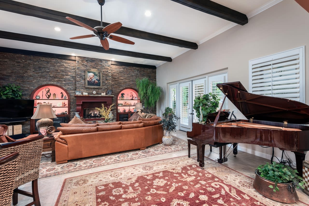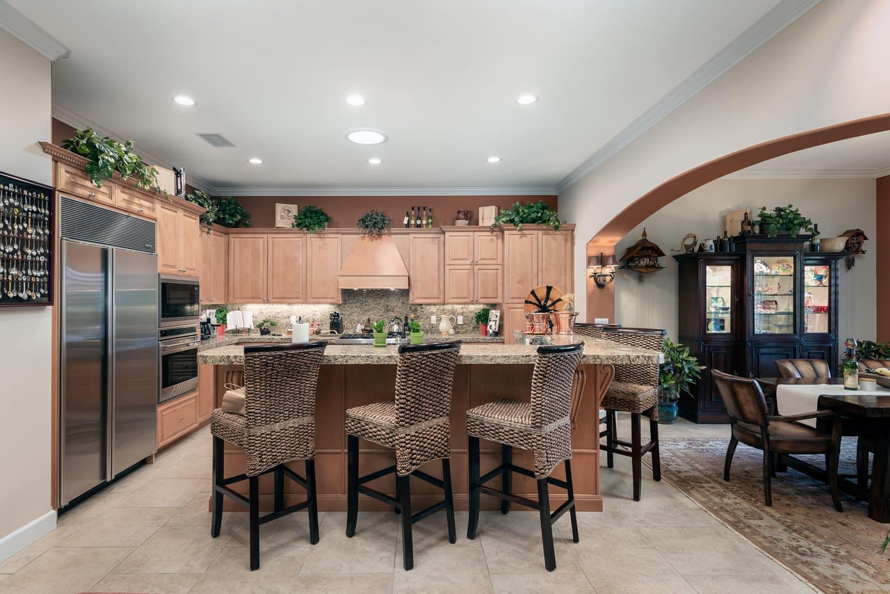 You don't want to miss this exceptional home, located in the Greg Norman Estates behind a second security gate. The meticulously maintained home features a Gourmet Style Kitchen with Sub-Zero Refrigerator , Wolf 6 burner cook top and Wolf oven, Dining Room, oversized Living Room with a 'Ledger Stone' Fireplace Wall and Wet Bar. The large Master Suite opens onto a a private patio. Enjoy, the Putting Green, Salt Water Pebble Tech Pool and Spa with new Tile and LED lighting. The large covered BBQ area includes a Wolf BBQ with a warming drawer, Sub-Zero Wine Refrigerator, and a Scotsman Ice Maker. Along with multiple sitting areas, mounted outdoor heaters, exquisite landscaping with water features. . The home has upgraded crown molding throughout and casita, Sonos surround sound , Custom cabinets with LED lighting in the Living area, and approx. 137 ft. of backyard backing up to a view of the prestigious Greg Norman Club house.
